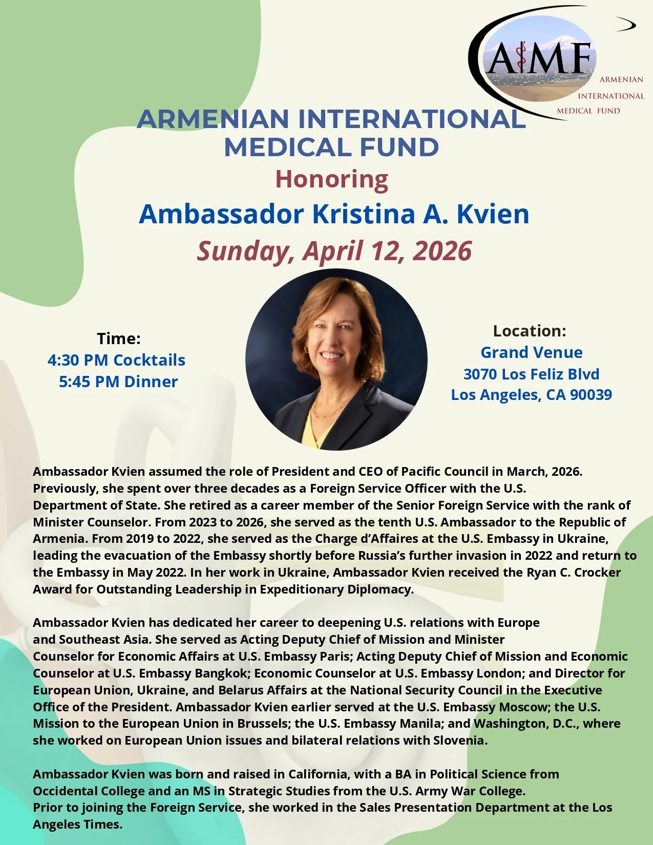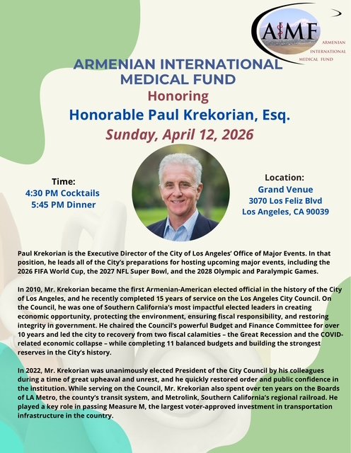 Salpy Akaragian, Ph.D., RN, NPD-BC, PHN, is the President and the Founder of the Armenian International Medical Fund (AIM Fund) and Retired Director of UCLA Health. She received a Bachelor of Science, Master of Science, and Philosophy of Doctorate degrees in Nursing from UCLA School of Nursing. She was the US Partner Representative for USAID/AIHA grants from 1995-2004, directed multiple healthcare projects, and initiated reforms and development programs in Armenia. In 2003, she co-founded the cochlear implant program at Erebouni Medical Center, Yerevan, Armenia. In 2016, she facilitating and is the advisor for the UCLA-ArmGenia program. She is the founder and the first president of the Armenian-American Nurses Association (AANA) in California (1989) and, in 1996, facilitated the formation of the Armenian Nurses Association in Armenia. In 2024, after the termination of AANA, she founded and is the executive chair of the Armenian American Nurses and Allied Health Care Association. Additionally, she is the treasurer for the Armenian International Medical Committee (AMIC). She has served on the California Board of Registered Nursing as a board member and as a Magnet Appraiser for American Nursing Credentialing Center. She is a national board-certified in nursing professional development. Salpy received Regional and National Gem awards from Nurse.com, and in 2014, she received the Ellis Island Medal of Honor. She is a member of several professional organizations and has presented on various health-related topics at Local, National, and International Conferences.
